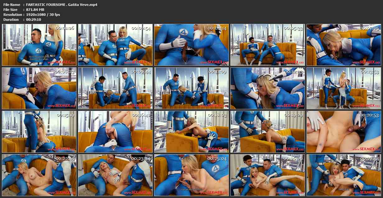When an interdimensional mission exposes them to a new form of gamma radiation, the Fantastic Foursome discover unexpected sexual side effects! As tensions rise and the suits become tighter than ever, Invisible Woman (played by Gatita Veve) gets so horny that she craves her teammates' cocks.