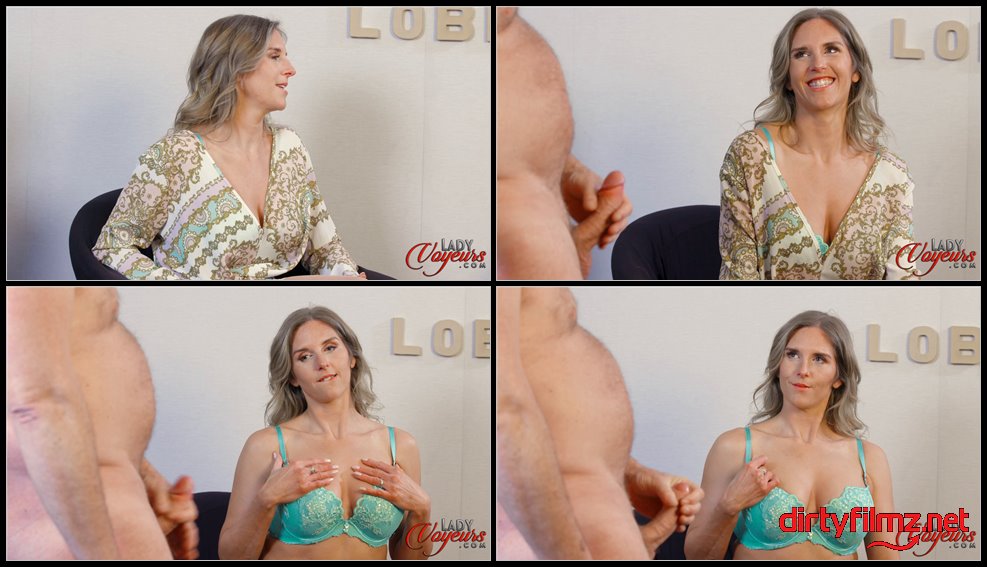 At the end of a successful date, Justin escorts Tara back to her hotel but when she just wants to have a drink in the lobby he seems disappointed. It turns out he thought they were going up to her room and he had got all excited. Tara looks around the deserted lobby and says the best she can do is let him jerk off in front of her now. He seizes the chance to get his cock out and Tara is shocked by how erect he is! She takes her dress off and the sight of her lingerie MILF body soon has Justin cumming all over the place!